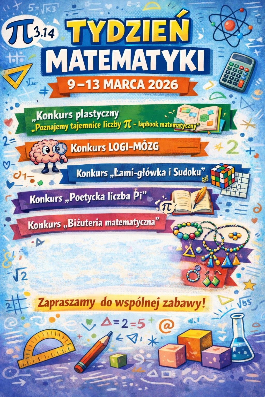 W dniach 9–13 marca w naszej szkole odbywał się Tydzień Matematyki, który nawiązywał do obchodzonego na całym świecie 14 marca – Dnia Liczby Pi. Data ta nie jest przypadkowa – zapis 3,14 odpowiada przybliżeniu jednej z najbardziej znanych liczb w matematyce, czyli π (pi). Liczba ta opisuje zależność między obwodem a średnicą koła i od wieków fascynuje matematyków oraz naukowców.