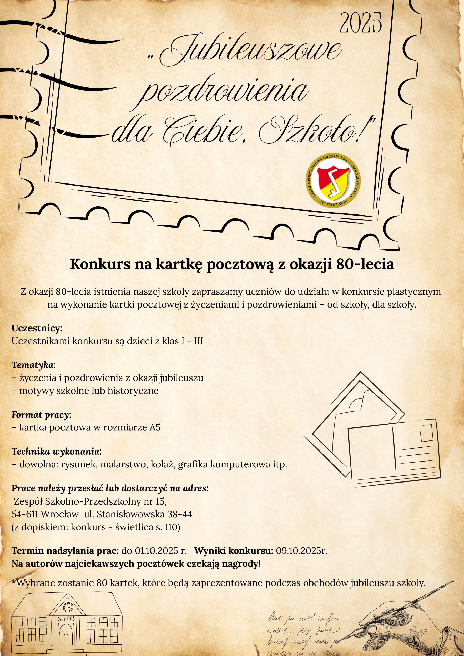 Czytaj więcej Ogólnopolski konkurs plastyczny „Jubileuszowe pozdrowienia-dla Ciebie, Szkoło!”